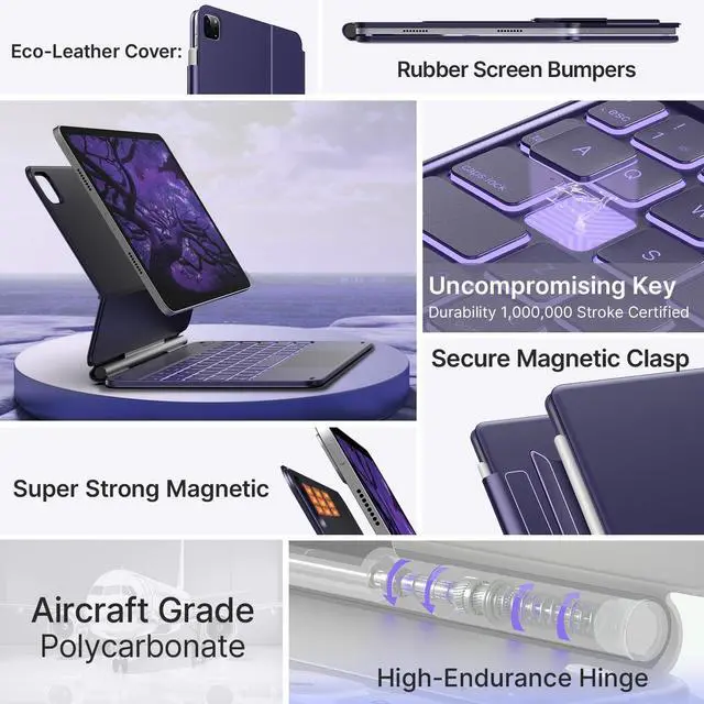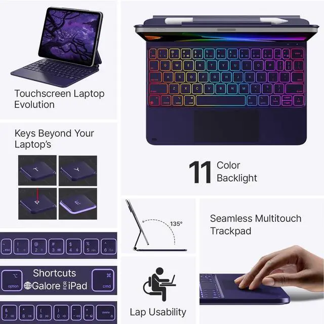 ^^: Elevate your iPad experience with our precise, versatile keyboard. Effortlessly navigate work and play with a full-area trackpad.