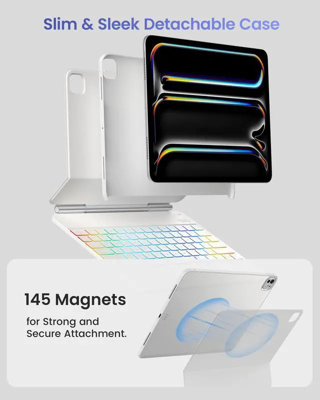 : Elevate your iPad Pro 13 inch (M5/M4) 2025/2024 experience with our versatile keyboard case. Models include A3360, A3361, A3362, A2925, A2926, A3007. Due to the different arrangement of the magnets, this magic keyboard case is not compatible with other iPad models. If you're unsure about compatibility, feel free to reach outwe're happy to help! ^^: Effortlessly magnetically attach your iPad and instantly transform it into a portable productivity machine, ready to work wherever, whenever you need. Whether in a coffee shop, at home, or on a plane, this simple setup allows you to stay productive no matter where life takes you.