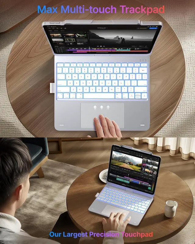 ^^ 11-Color Backlit Keyboard: Choose from 11 backlight colors and 3 brightness levels to match your environment. Whether youre working late, studying in a dorm, or traveling, the backlit keyboard for iPad Air 13 inch keeps every key visible.