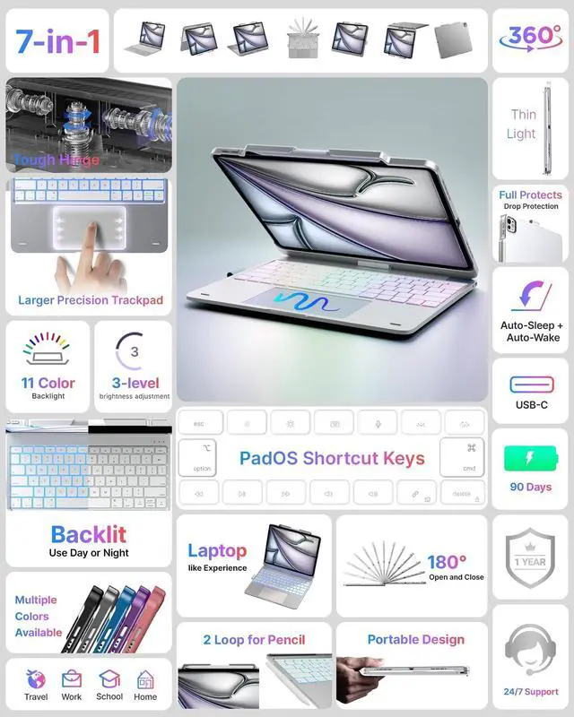 Compatibility: Compatible with iPad Air 13-inch(M4/M3/M2 2026/2025/2024); Models A3461, A3462, A3464, A2898, A2899, A2900, A3268, A3269, A3271. Please check the model number on the back of your iPad before purchasing to ensure a perfect fit. ^^ 360 Rotating Design, 7
