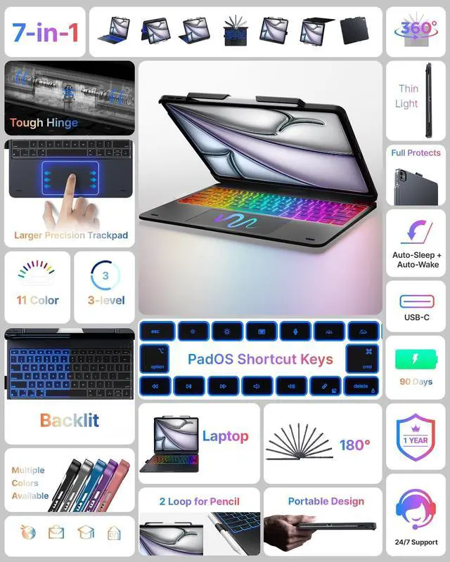 Compatibility: Compatible with iPad Air 13-inch(M4/M3/M2 2026/2025/2024); Models A3461, A3462, A3464, A2898, A2899, A2900, A3268, A3269, A3271. Please check the model number on the back of your iPad before purchasing to ensure a perfect fit. ^^ 360 Rotating Design, 7