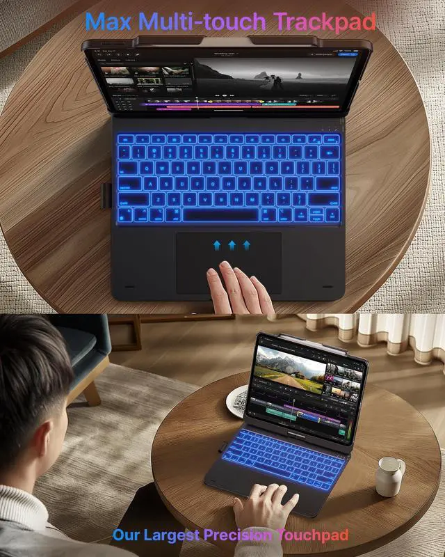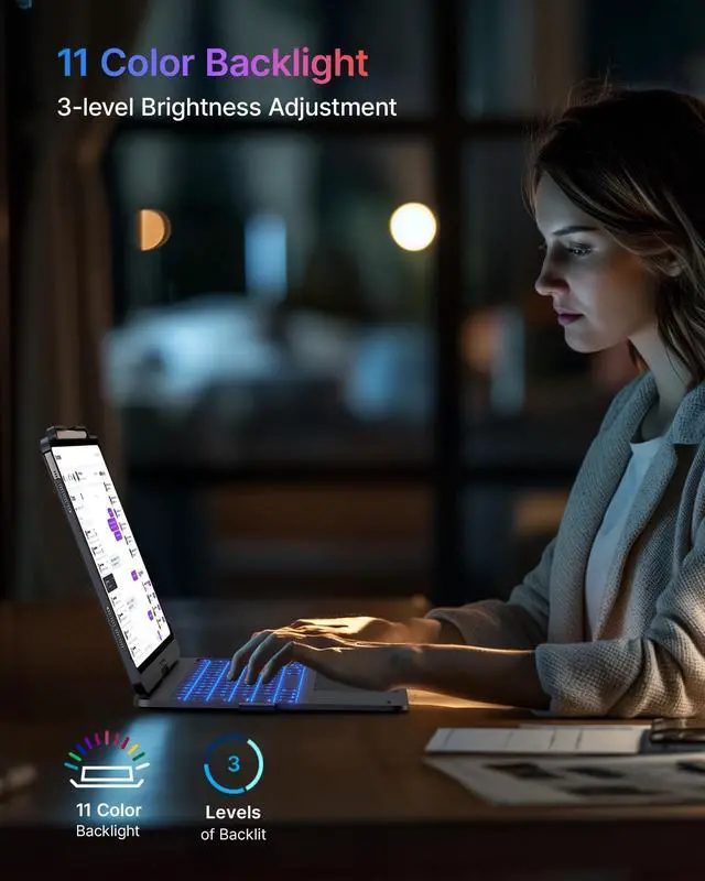 ^^ 11-Color Backlit Keyboard: Choose from 11 backlight colors and 3 brightness levels to match your environment. Whether youre working late, studying in a dorm, or traveling, the backlit keyboard for iPad Air 13 inch keeps every key visible.