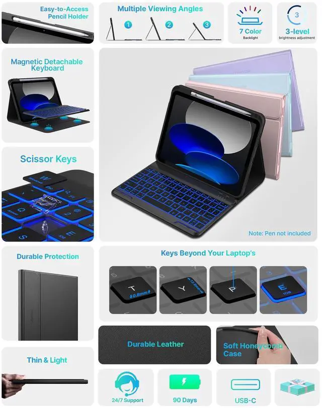 Package Includes: 1 x iPad 10th Generation case with keyboard, 1 x wireless keyboard, 1 x Type-C charging cable, 1 x user manual (iPad and Apple Pencil not included) ^^ Commitment to
