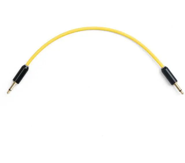 Unique family of coloured modular patch cables with discrete LED lighting elements ^^ connectors: 2 x 3.5 mm mini mono jack straight ^^ cable shape and length: straight, 2x15cm ^^ cable colour: Pineapple Yellow ^^ LED signal indicator: Red and Green
