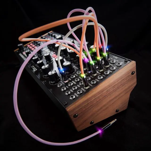 Unique family of coloured modular patch cables with discrete LED lighting elements