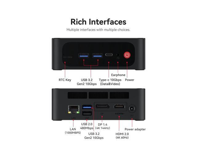 - [(Rich Interface)] Mini computers Beelik SER5 is equipped with a variety of practical interfaces to meet the daily needs of the device link; USB3.0 x 3, USB 2.0 x 1, RJ45 Gigabit LAN port, HDMI 2.0 x 1, DP x 1,Type-C x 1 (support PD charge), WIFI6 + Bluetooth 5.2; Teipl