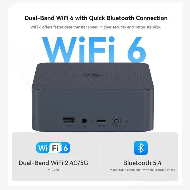 Faster Networking: 1235U mini computer has 2*1000Mbps LAN (RTL8111H), network interface speeds up to 1000Mbps bandwidth rate, which can help you quickly open the website. The 1235U micro pc built-in WiFi6 ( 802.11 ax), stronger capacity of resisting disturbance and farther coverage. Besides, bluetooth 5.4 allowing you more quickly to connect other wireless devices (headset, mouse, keyboard, etc. ) ^^