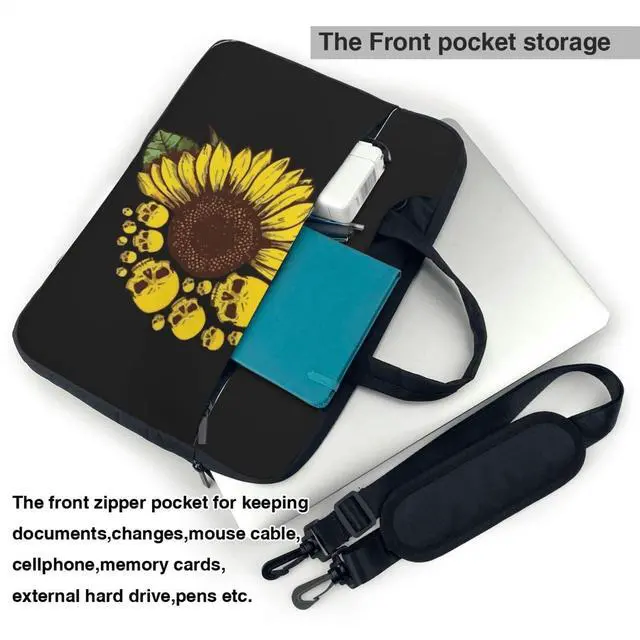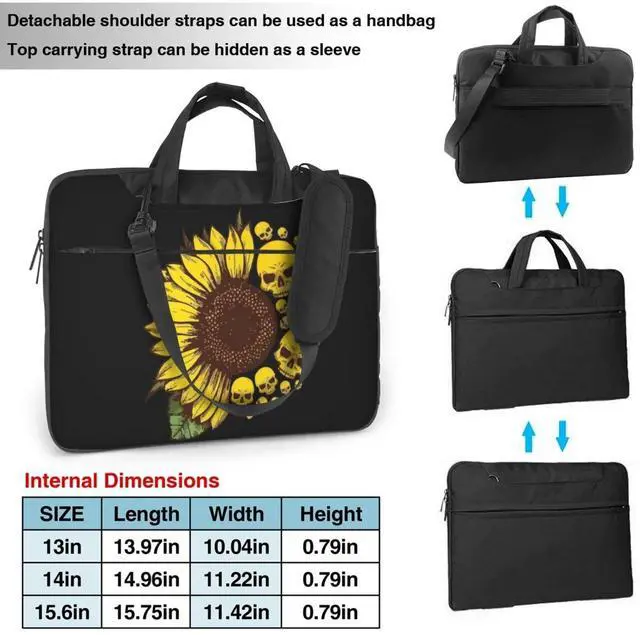 Niapessel Skulls Sunflower Pattern Laptop Case Bag Sleeve 15.6 Inch For Adult Women Men