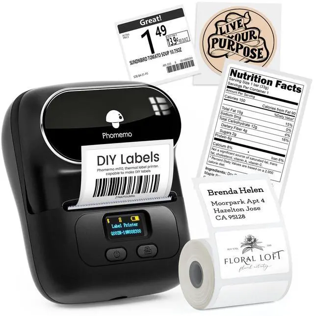 • Included: 1. Phommeo M110 Bluetooth Thermal Label Printer (Ebony Black)