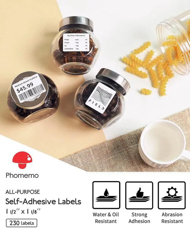 • Included: 2. Phomemo 1.57'' x 1.18''(40 x 30mm) Labels (230 pcs)