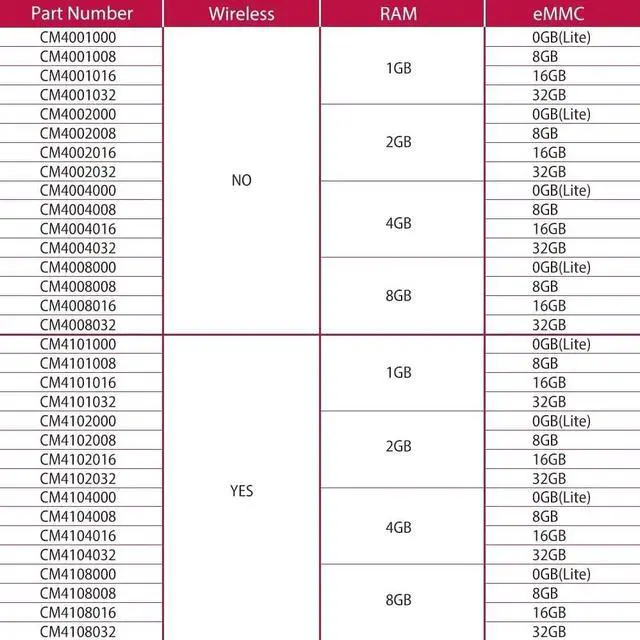 Product Description: The power of the Raspberry Pi 4 in a compact form factor for deeply embedded applications! The Raspberry Pi Compute Module 4 (CM4) harnesses the compute power of the popular Raspberry Pi 4 Model B, bringing it to a smaller form factor suitable for integration into products. Key features include a high-performance 64-bit quad-core processor, dual-display support at resolutions up to 4K, hardware video decode at up to 4Kp60, up to 8GB of RAM, Gigabit Ethernet, USB 2.0, dual camera interfaces and PCIe Gen 2 x1 interface.