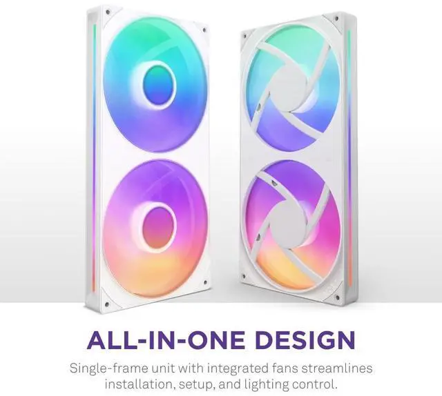NZXT F280 RGB Core - 280mm Single-Frame Fan Unit with 2 x 140mm RGB Fans - Speed & Lighting Control - High Static Pressure & Airflow - Fluid Dynamic Bearings - 8 aRGB LEDs Per Fan - White