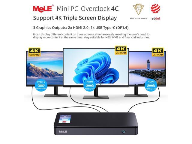 - Full-Function USB-C & 4K Triple Dsiaply 1x full function USB Type-C (DP1.4 ) interface supports 4K display, data transmission (5Gbps) and Power input(With PD3.0 protocol,12-18V), all in one cable. The USB-C Power Input also support PD3.0 protocol, can be powered by a mobile power bank or laptop charger that supports USB C Power Delivery. Plus 2x HDMI 2.0 ports, the mini PC support 4K Triple Screen Display. Ideal for conference presentation, digital signage, IoT, financial industry, WMS, MES.