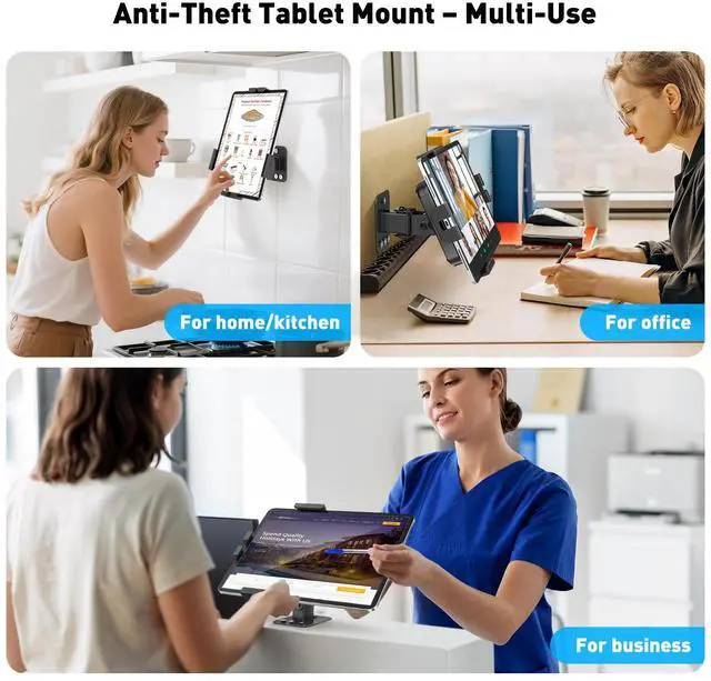 Heavy Duty Steel Construction: Crafted from premium heavy steel, this ipad wall mount ensures robust durability and stability, ideal for busy retail stores, offices, and public spaces.