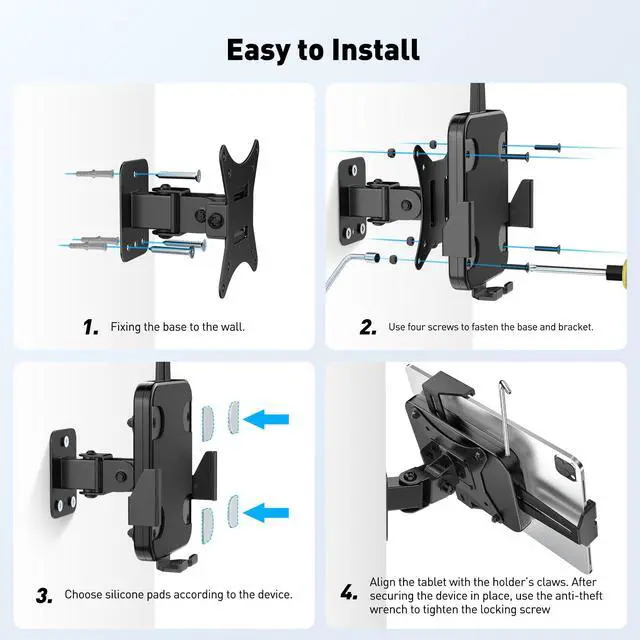 Secure Anti-Theft Design: Equipped with tamper-resistant screws and a lockable bracket, this ipad mount wall provides reliable security in high-traffic areas to protect your valuable devices.