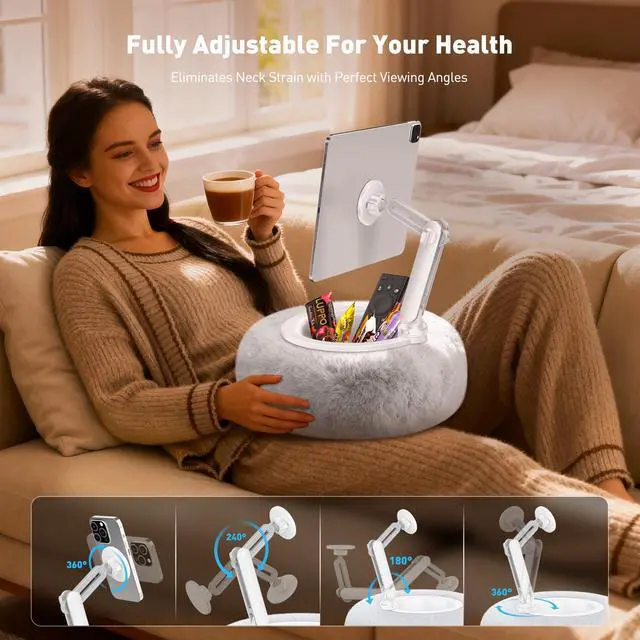 Cloud-Soft, Feather-Light: Experience superior comfort with our premium ipad holder for bed, featuring an ultra-soft, non-shedding plush fabric. The lightweight 1.66 lb design makes it a perfect ipad lap pillow for portability, while its wide base ensures this tablet pillow stand remains exceptio