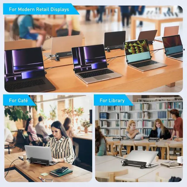 Heat-Dissipating Construction: Built with durable zinc alloy and ABS, our laptop security lock station is designed for longevity. The non-slip surface ensures stability, while its heat-dissipating properties keep your laptop cool during prolonged use. ^^ Lightweight, Versatile