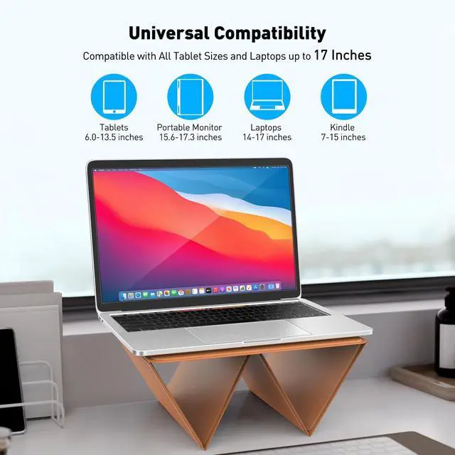 ^^ Unmatched Device Harmony: Embrace universal fit with our ipad stands broad compatibility. Designed to cradle 14"~17" tablets, including the iPad and Kindle, and also accommodate MacBook Air/Pro, it's the quintessential tablet and laptop stand for the discerning user.