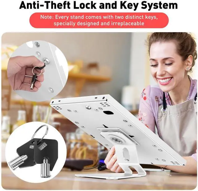 • Sturdy & Secure Protection: Constructed with a solid all-metal frame, heavy-duty and sturdy. The built-in anti-slip pad provides enhanced protection for your iPad. Use our anti-theft iPad kiosk stand to ensure the security of your tablet. Even in high-traffic environments, our lock and key system ensures worry-free usage.