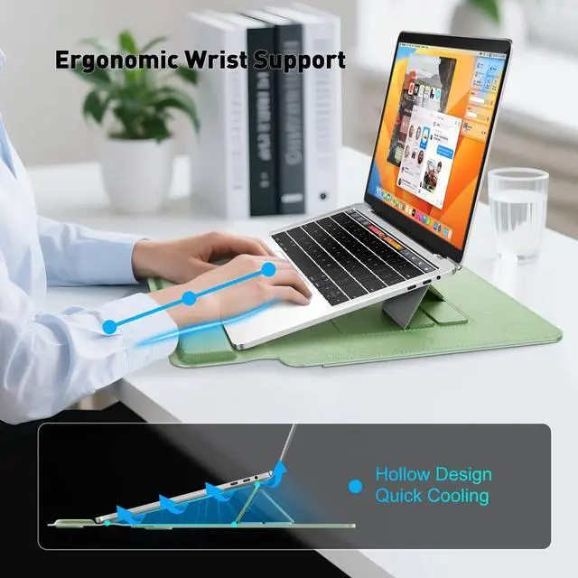 Ultimate Ergonomic Workstation: Transform your workspace anywhere with this versatile laptop sleeve case with stand. Our 2-in-1 laptop sleeve bag easily converts into an ergonomic laptop sleeve stand featuring a unique built-in wrist cushion and two adjustable angles (15/35) to significantly reduce neck, back, and wrist strain for enhanced comfort and productivity on the go. ^^