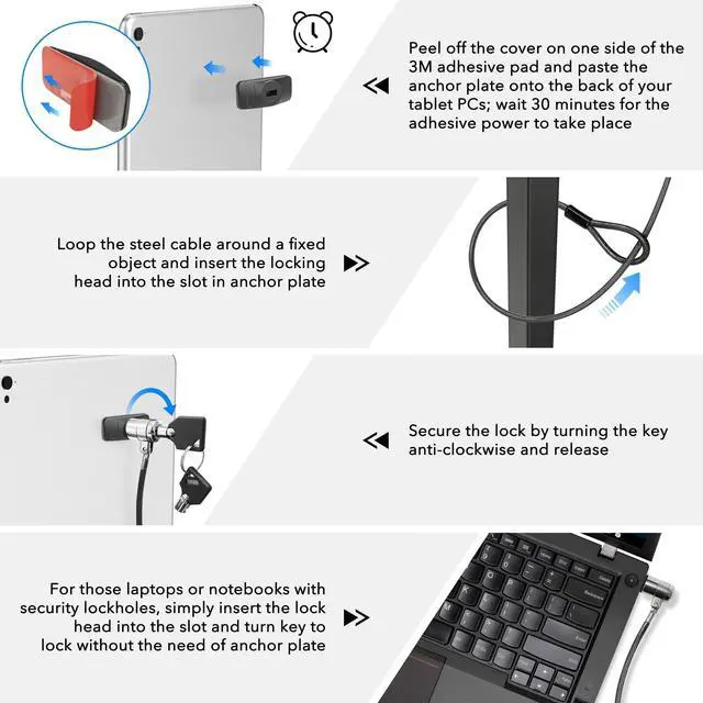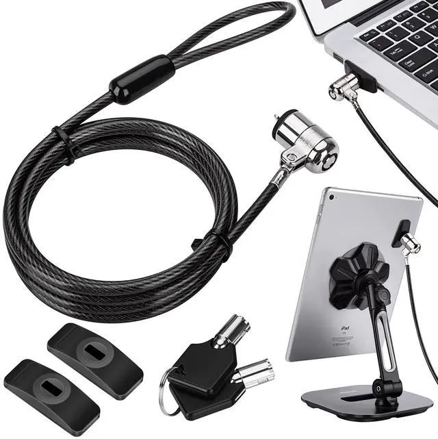^^ Easy Key Operation: The minimalist design ensures easy installation in seconds while being highly effective. It seamlessly integrates with your sleek Apple or Android mobile devices as a MacBook locking cable, iPad Air lock, or Samsung Galaxy Tab cable lock for added security.