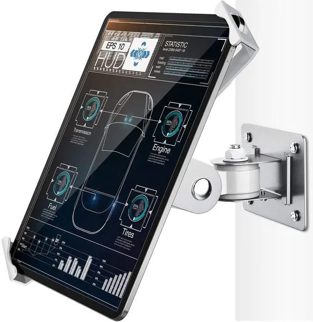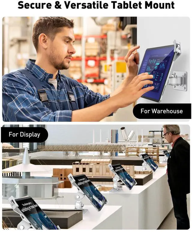 For Homes, Stores & Businesses - This tablet wall arm is a versatile way to maintain distance and provide user-friendly interaction for classrooms, conference rooms, recording studios, food delivery, restaurant to-go orders, healthcare facilities, virtual offices, gyms and kiosks as well as under kitchen cabinets for recipes and videos. ^^ 360 Portrait & Landscape Mode - Adjust and personalize your viewing preference with 360 rotation capability, allowing you to choose between portrait and landscape modes. Flexible joint design lets you easily tilt the screen to your desired angle to reduce glare and improve visibility.