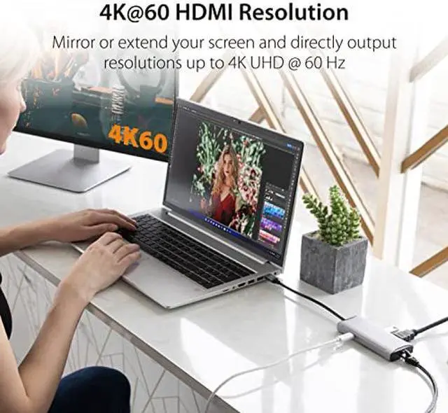 j5create USB C Hub - 4K 60Hz HDMI, 2 USB-A 10Gbps, USB-C 10Gbps with PD 100W, Ethernet, | Multiport Adapter for MacBook, ChromeBook, XPS, Surface Pro (JCD392)