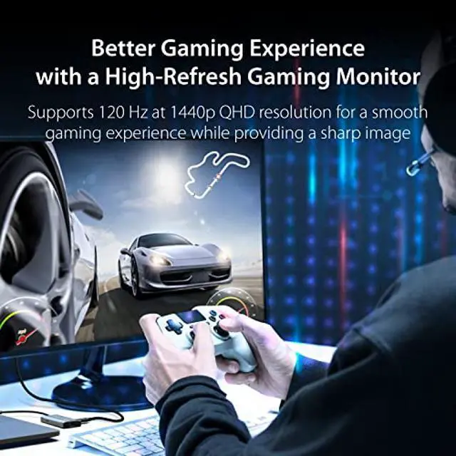 Connect a High-Refresh Gaming Monitor! Supports 120 Hz at 1440p QHD resolution for a smooth gaming experience while providing a sharp image.
