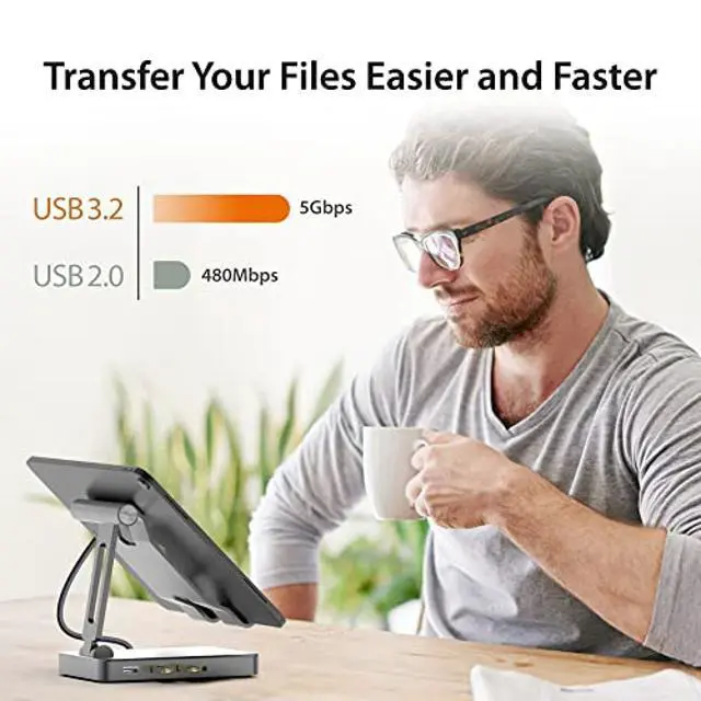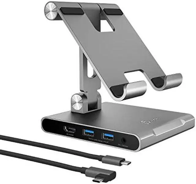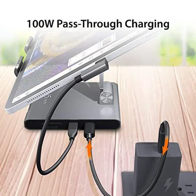 j5create Adjustable Tablet Stand with USB Type C Docking Station for iPad Pro/Air/Mini: 4K60 HDMI, 2 x USB-A 5Gbps, 100W PD Charging, microSD/SD Card Reader, 3.5 mm Audio Jack (JTS224)