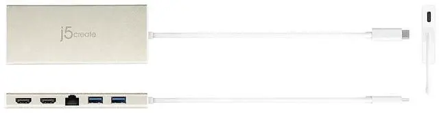 j5create USB-C Mini Dock- Type C Hub with 2X HDMI, 2X USB 3.0, Ethernet, Power Delivery 2.0 (JCD381)