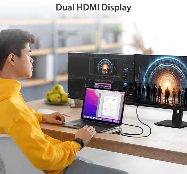 Supports two displays with max resolution of 4K @30 Hz / 1080p @60 Hz. Easily add an additional display through a USB 3.0 and HDMI connection.