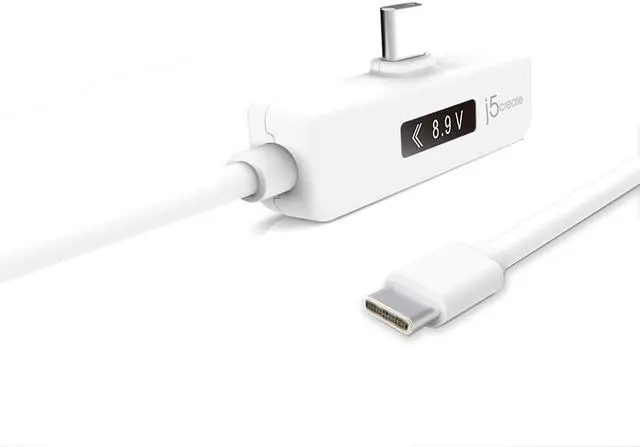 • j5create USB-C to USB-C 2.0 Right Angle Cable with Dynamic Power Meter (4ft) Support Power Delivery 2.0 with E-Marked IC Chip and OLED Display