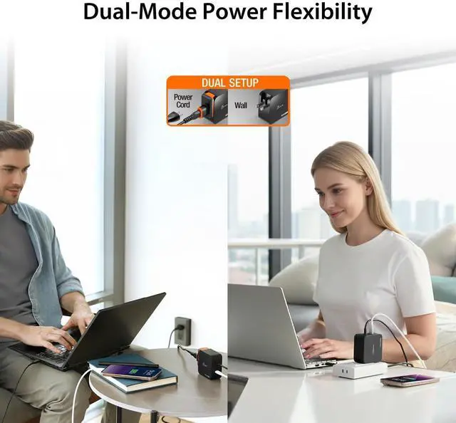 Adapt to Any Workspace: Wall Plug or Desktop Charger Enjoy flexibility with the included AC extension kit. Use the charger as a compact, space-saving wall charger when youre traveling light. When you're at your desk, attach the ext
