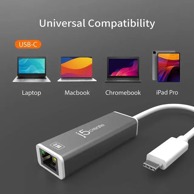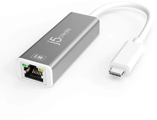 j5create USB-C to 2.5G Ethernet Adapter, RJ45 LAN 2.5 Gigabit Network to USB Type C/Thunderbolt Converter, Compatible for MacBook Pro/Air, Tablets, Dell XPS, Surface Pro 7 (JCE145)