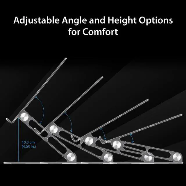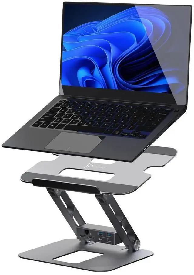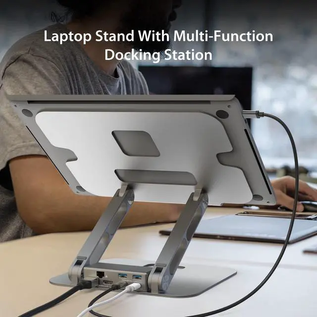 This multi-angle stand is made of durable aluminum and can support a variety of items in addition to a laptop including tablets, books, etc. ^^ The integrated USB-C mini dock lets you easily create a workstation with one 4K HDMI or Dual 1080p HDMI display outputs, a Gigabit Ethernet port for easy network access, and two USB 5Gbps Type-A downstream ports, as well as a USB-C port that supports 5Gbps data transfer rate and up to 100W pass-through, providing all the connectivity you need for enhanced productivity and to connect your peripherals.