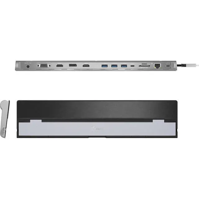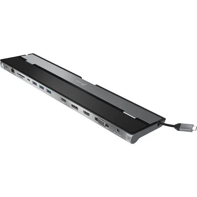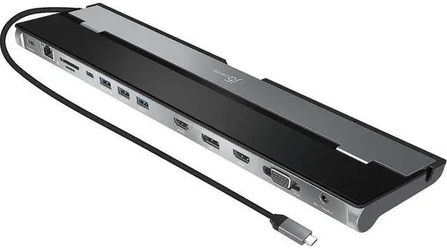 This USB 3.0 docking station is also equipped with a RJ45 Gigabit Ethernet port, memory card reader/writer, and combo audio jack for maximum productivity. The elevated design assists with heat dissipation and, with its double-sided cable storage compartment, ensures an easy connection regardless of your USB-C ports location. All 13 ports are combined into one slim docking station, so youll have all the connections you need to stay productive!