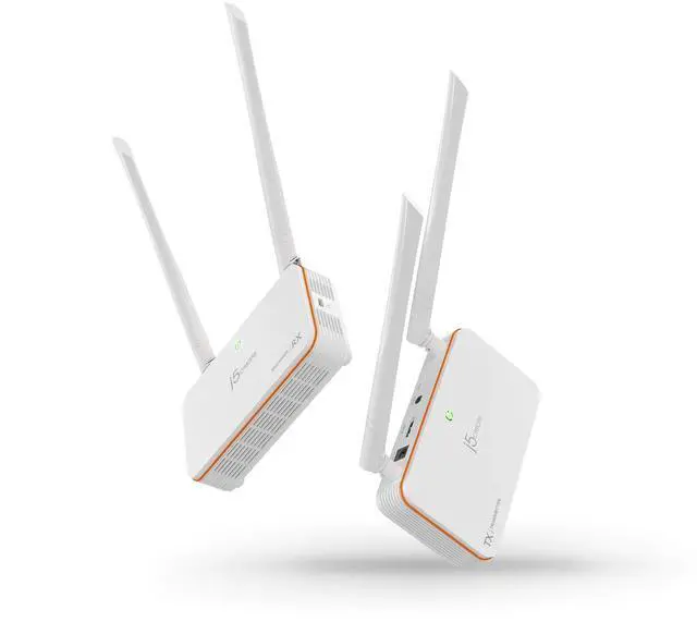 The JVAW53 HDMI over Wireless Extender includes a transmitter and receiver kit. It can send a high definition video and audio signal to an HDMI enabled TV set, projector or LCD PC monitor display device with receiver distance up to 60 meters and nearly zero latency.