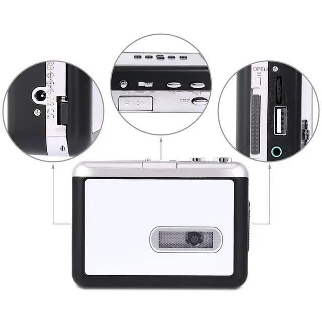 Cassette to MP3 Converterezcap231 cassette tape to MP3 converter, Awaken your memory of the past, awaken the classic music. Convert audio music cassette tape to MP3 format without computer needed. Quickly converts your old cassettes - either manually or automatically - really handy and easy to use. Older tapes sound quality is not HD lossless. After the tape player is converted. The sound quality may be affected. This tape playing device is designed to solve the tape conversion problem. ^^ Convert cassette to MP3 format via USB driveCapture and convert your old tape to MP3 format via USB drive which can be used for your computer, while checking your recorded file easily with playback function (Support
