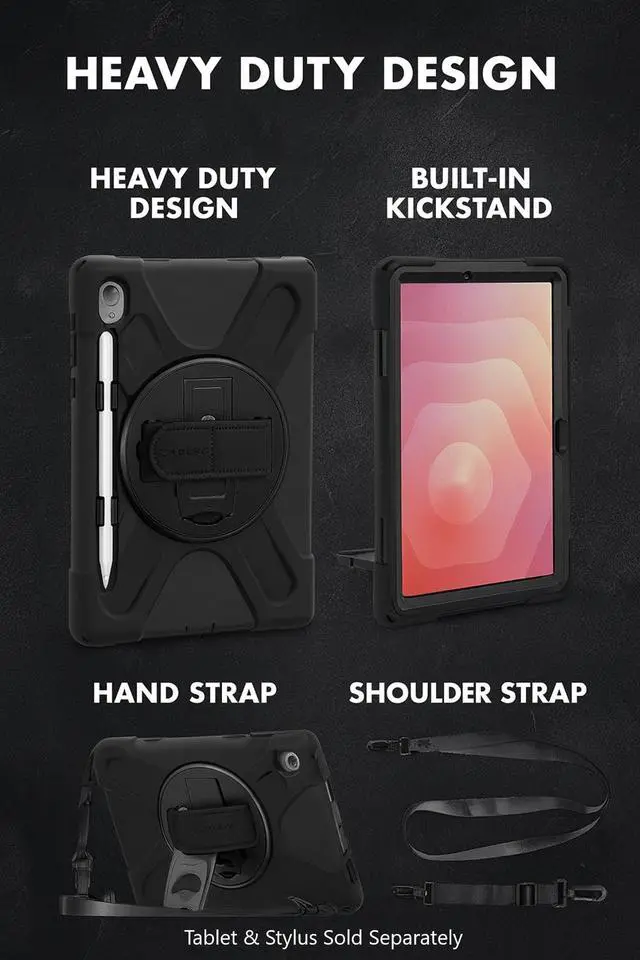 Embark on your digital journey through the toughest environments with this SaharaCase Raider Series heavy-duty case for your Galaxy Tab S11 Ultra. Inspired by the resilience of the desert, this case features a built-in screen protector that guards your tablets display against the harsh sands of scratches and scuffs. Crafted from triple-hardened TPU, it mimics the enduring nature of desert rocks, offering enhanced durability and resistance to wear. Just like a desert explorer needs reliable gear, this case comes equipped with a rotating hand strap for a firm hold during turbulent travels and a shoulder strap for convenient carrying over dunes and office hallways alike.