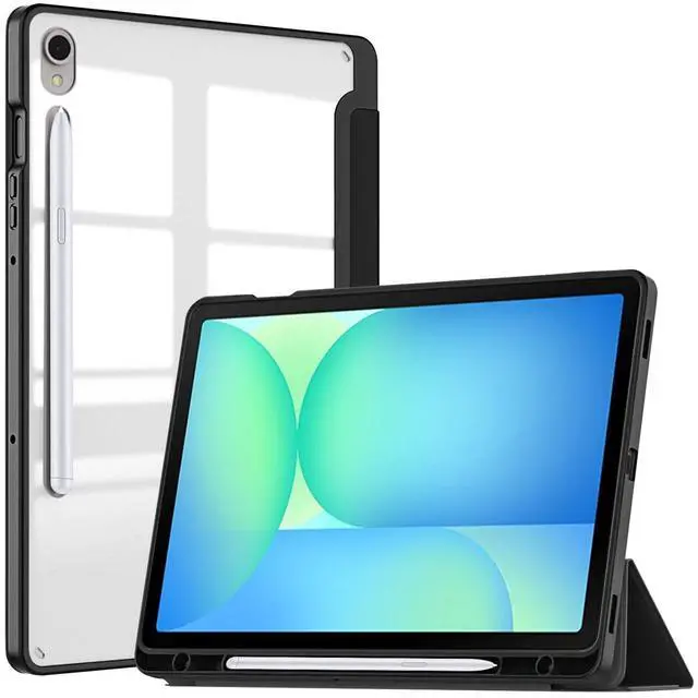 Form-fitting and lightweight - Specifically designed for Galaxy Tab S10 Lite (2025) and Galaxy Tab S10 FE for a perfect fit. ^^ Ergonomic open button design - Ensures easy access to all essential functions and controls. ^^ Made with triple-hardened material for exceptional durability - Providing reliable protection against potential damage. ^^ Resistant to stretching and yellowing - Maintaining its original appearance over time. ^^ Convenient auto wake/sleep function - For improved battery life and user experience. ^^ Equipped with a foldable kickstand - Allowing hands-free viewing and comfortable typing.