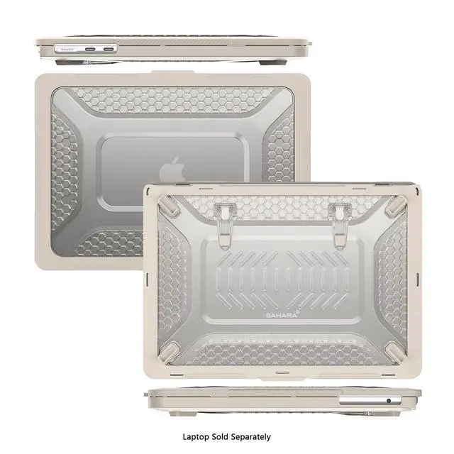 Designed for MacBook Pro 16-Inch (20212025, M1M5) Ensures a snug, secure fit with full access to ports and functions. ^^ Built-in adjustable stand Elevates the laptop for better posture and airflow. ^^ Honeycomb-reinforced back panel Adds strength and visual flair while diffusing impact. ^^ Triple-hardened TPU and polycarbonate build Guards against drops, scratches, and wear. ^^ Shock-absorbing corners Help minimize damage from accidental bumps and falls. ^^ Slim, form-fitting profile Easy to slip into bags without bulk. ^^ SAHARA Limited Lifetime Replacement Warranty.