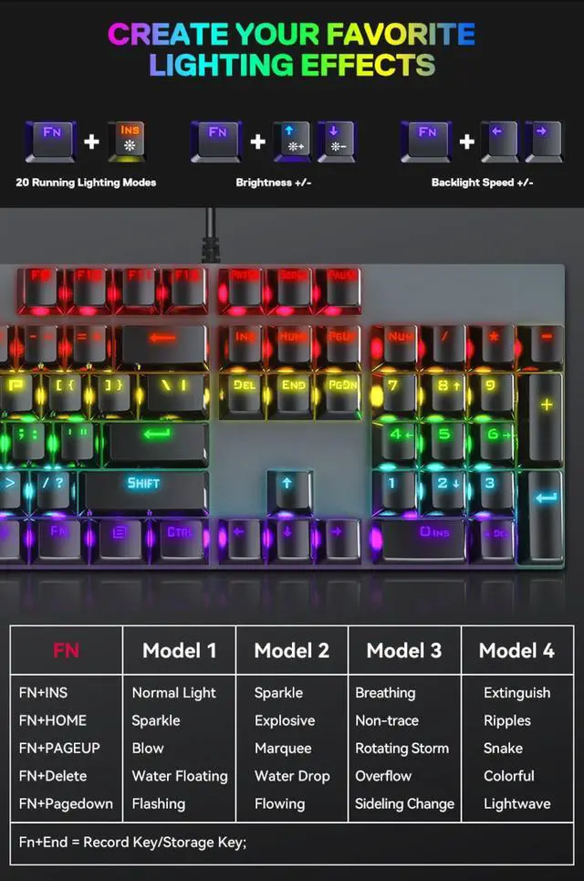 ^^ Dynamic RGB Backlighting: Choose from 20 lighting modes and a customizable RGB effect, creating a personalized gaming atmosphere. ^^