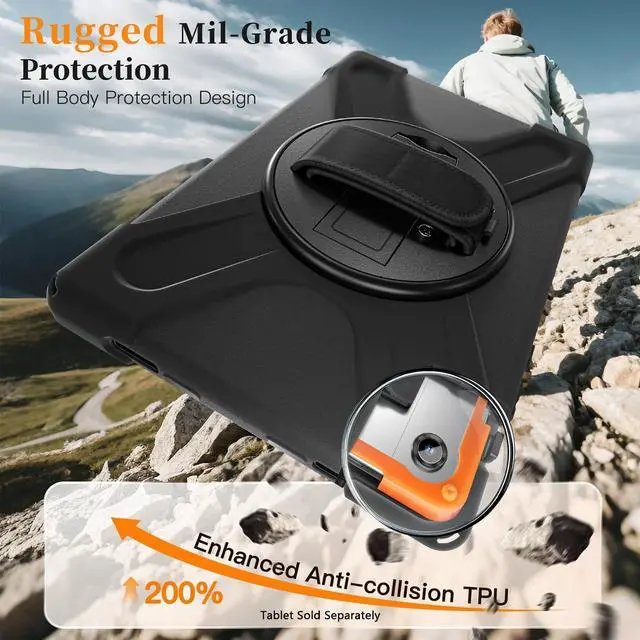 Embark on your digital journey through the toughest environments with this SaharaCase Raider Series heavy-duty case for your Galaxy Tab A11+. Inspired by the resilience of the desert, this case features a built-in screen protector that guards your tablets display against the harsh sands of scratches and scuffs. Crafted from triple-hardened TPU, it mimics the enduring nature of desert rocks, offering enhanced durability and resistance to wear. Just like a desert explorer needs reliable gear, this case comes equipped with a rotating hand strap for a firm hold during turbulent travels and a shoulder strap for convenient carrying over dunes and office hallways alike.