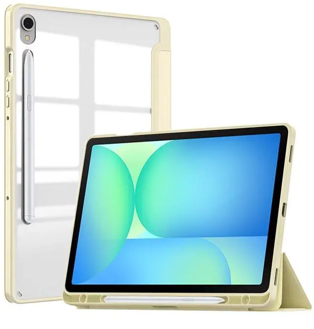 Form-fitting and lightweight - Specifically designed for Galaxy Tab S10 Lite (2025) and Galaxy Tab S10 FE for a perfect fit. ^^ Ergonomic open button design - Ensures easy access to all essential functions and controls. ^^ Made with triple-hardened material for exceptional durability - Providing reliable protection against potential damage. ^^ Resistant to stretching and yellowing - Maintaining its original appearance over time. ^^ Convenient auto wake/sleep function - For improved battery life and user experience. ^^ Equipped with a foldable kickstand - Allowing hands-free viewing and comfortable typing.