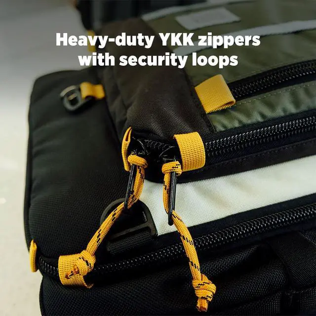 • ADD ONS + ATTACHMENTS: Pass through panel to stack on rolling luggage, daisy chain clips along front, packfast clips for smaller Topo bags, expandable side water bottle or external charger pockets on both sides, heavy duty durable recycled nylon
