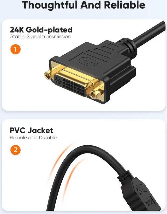Bi-Directional HDMI to DVI cable: Connect source devices with an HDMI interface (such as Laptop, Desktops, Blu-ray Player, Xbox, PS3, PS4, Roku, Wii, etc.) to DVI equipped HDTV, Monitor,Projector; or connect a DVI equipped source device to a display device that supports HDMI. Kindly note: Please select the correct signal source: DVI signal source or HDMI signal source. If you select an incorrect signal source, it will cause the cable not to work or the monitor not to display any image.