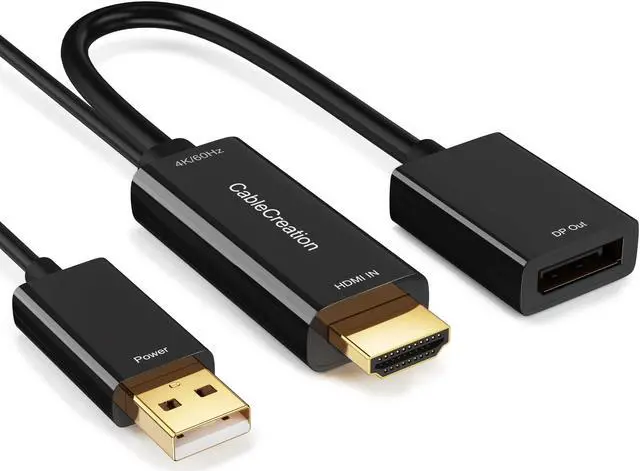 CableCreation HDMI to DisplayPort Adapter with USB Power, 4K X 2K@60Hz HDMI Male to DP Female Adapter Compliant with Xbox One/PS4/PS5