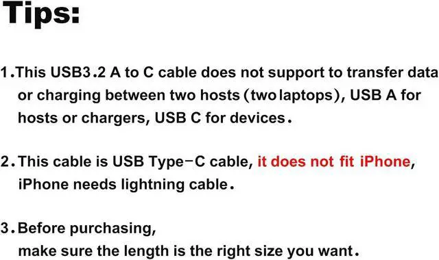 USB 3.2 10Gbps Data Transfer - Gen2 USB 3.2 Type-C to Type-C Cable supports super speed data transmission up to 10Gbps. You can transfer HD movies or songs in seconds with your USB C SSD (Note: This cable does not support data transfer or charging between two laptops)