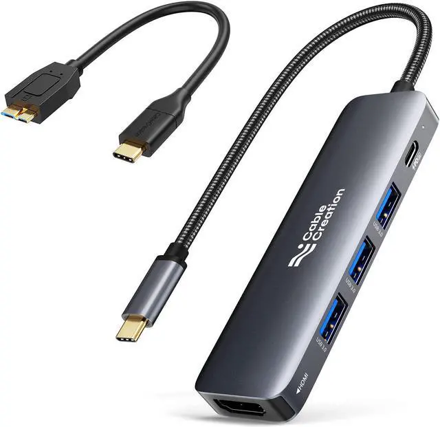 CableCreation Short Micro B to USB C Hard Drive Cable Bundle with 5-in-1 USB C Hub with HDMI, USB 3.0, Power delivery