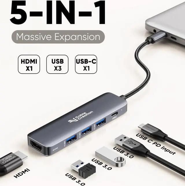 USB C Dock Massive Expansion: thunderbolt hub supports 1 HDMI, 3 multiple USB-A ports, and power delivery through USB-C, all through a single USB-C port. If you have a device that has limited ports this is the answer. USB c port expander plug and play, easy to use, and super compact making it easy to travel with